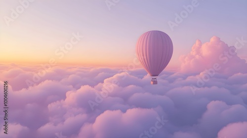 balon na gorące powietrze, pastelowe kolory, chmury, wschód słońca, lekkość, marzenia, surrealistyczne, bajkowe, pastel, podróż, przygoda, niebo, balon w chmurach, pastelowe niebo, balon w powietrzu,