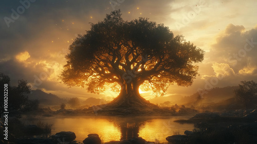 Potężne drzewo w mitologii nordyckiej, uważane za centrum wszechświata. Jego ogromne korony rozciągają się ku niebu.