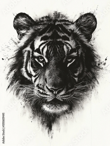 Portret tygrysa w czerni i bieli malowane tuszem chińskim, ilustracja projekt generative ai