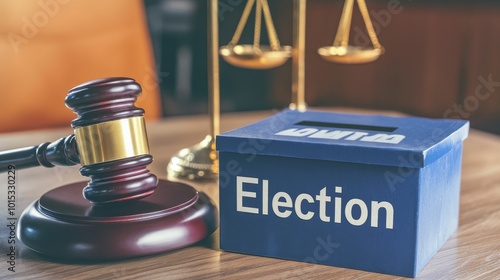 Authority of the Ballot-The Foundation of Democracy: A gavel and ballot box symbolize the power of the vote and the importance of election rules.the pillars of a fair and just electoral process.