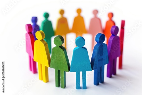 A collection of wooden people standing in a circle, perfect for decorative or symbolic uses