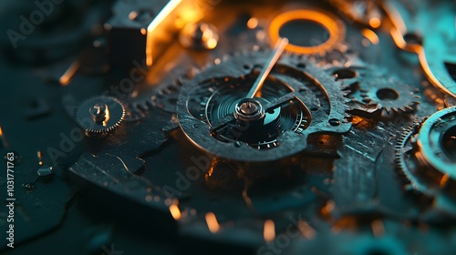 Intricate dismantled mechanical watch with detailed gears and springs on dark background, symbolizing precision and complexity in teardown analysis.