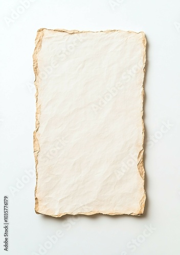 A blank sheet of textured paper with uneven edges, set against a light background, ideal for notes, crafts, or invitations.