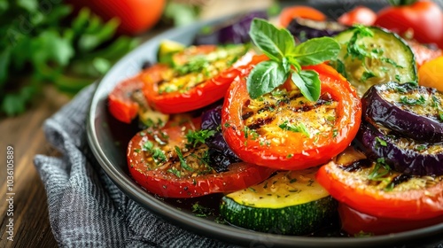 Steamed Vegetables Eggplant Tomato Pepper And Zucchini