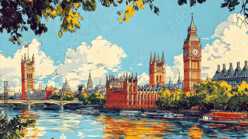 Vibrant illustration of London with Big Ben and Westminster