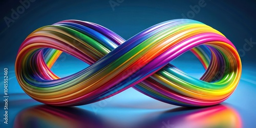 A vibrant rainbow infinity symbol, a captivating swirl of color against a deep blue backdrop.