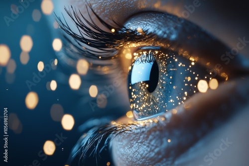 This image beautifully captures cosmic reflections within a human eye, inviting the viewer into a realm where reality and imagination intertwine flawlessly.