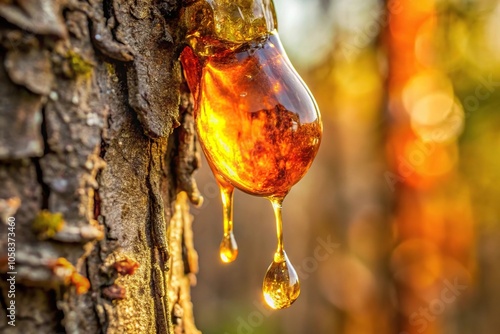 fossilized amber drips from a tree trunk, earthy, slow, geological, patina, organic