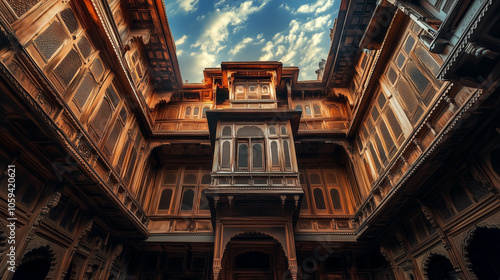 Majestatyczny budynek emanuje urokiem i historią. Misternie rzeźbione drewniane fasady zachwycają detalami, a bogate ornamenty zdobią okna i drzwi.