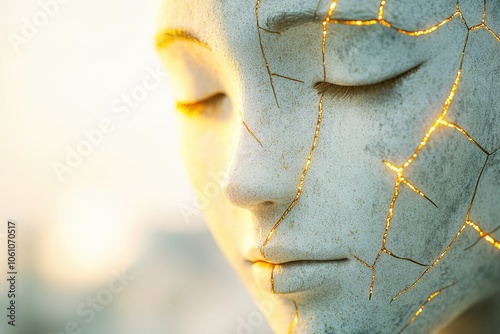 A Broken Ceramic Figurine Transformed by Kintsugi Into a Stunning Gold-Filled Masterpiece at Sunset