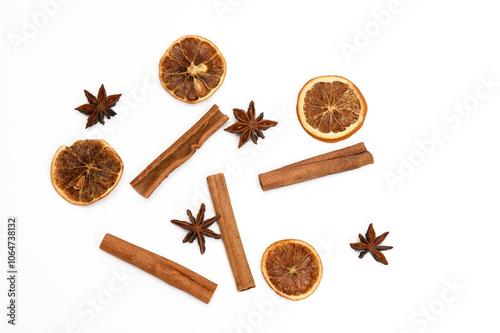 Świąteczny motyw, zapach świąt, suszone pomarańcze anyż i cynamon
