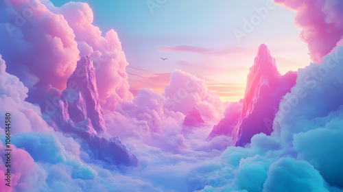 Vibrant surreal dreamscape scenery with a long shot flying through the air. Dreamscape. Illustration