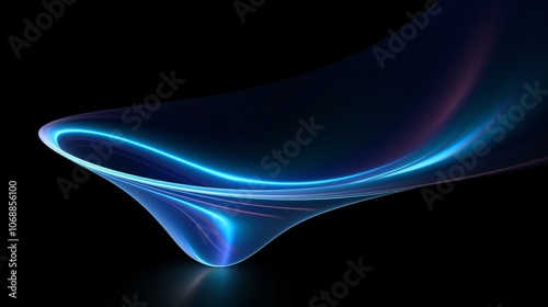 Futuristic blue neon swirls shape a funnel against a dark backdrop, creating a whirlwind vortex light effect in a realistic illustration.