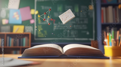 A 3D math book on a school desk with floating 2D trigonometry symbols, symbolizing advanced math studies, 4k resolution, ultra-realistic, uncluttered background