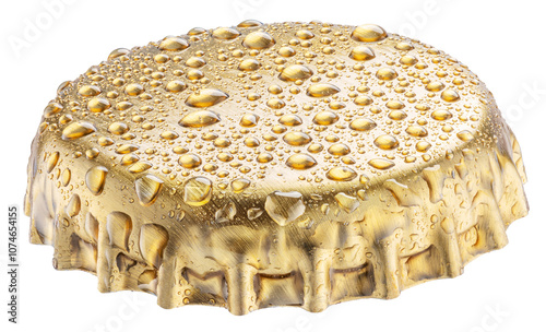 Crown bottle cap covered with water drops on white background. File contains clipping path.