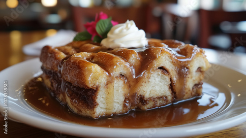 Miękkie bułeczki cynamonowe, udekorowane połyskującym lukrem, ułożone na talerzu i gotowe do podania.