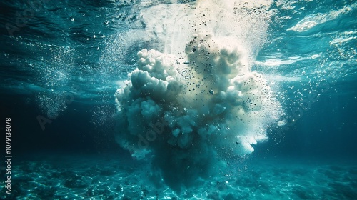 Powerful Underwater Explosion Erupting Dramatic Bubbles and Water Spray