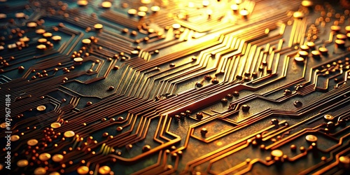 A close-up view of a circuit board with intricate copper traces, highlighting the complexity and beauty of modern technology.