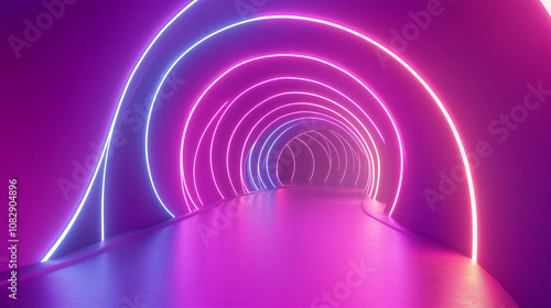 Nowoczesny tunel oświetlony wielokolorowymi światłami, które wzdłuż ścian tworzą efekt wizualnej głębi.