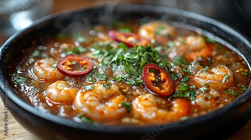 Shrimp dish kitchen food photography warm atmosphere close-up gourmet cuisine