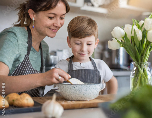 Wspólne rodzinne gotowanie mama z dzieckiem