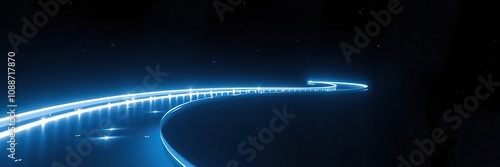 Floating in the darkness of space, a winding reflective mirror path is illuminated by sparkling neon lights, set against an abstract textured backdrop, space, cosmic