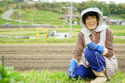 Senior woman growing organic fresh vegetables in the garden / 畑で野菜作りをする高齢者 収穫 栽培 野菜 おばあさん おじいさん 農業 趣味