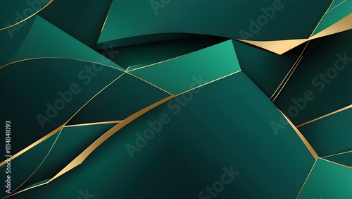 Minimalist Emerald Green, Gold Geometric Background with Soft Gradients and Modern Aesthetic