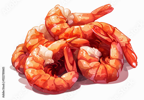 Soczyste, świeżo ugotowane krewetki ułożone na białym tle.