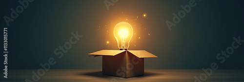 Generate unconventional ideas with a spark of creativity symbolized by a lightbulb situated outside an ordinary box confines._00002_