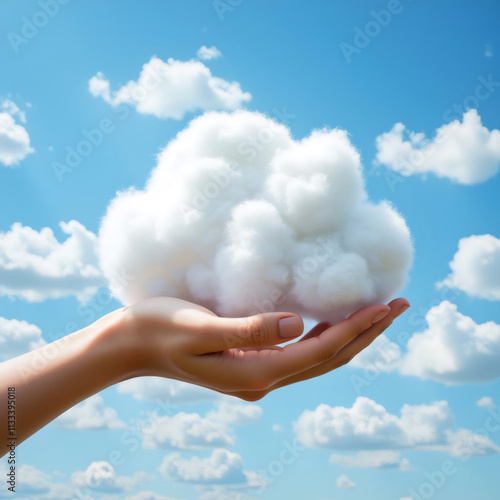 Explora la ligereza y suavidad de una nube capturada en la palma de tu mano.