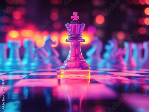 A glowing chessboard morphs into an abstract battlefield, representing a creative gambit move, cinematic lighting
