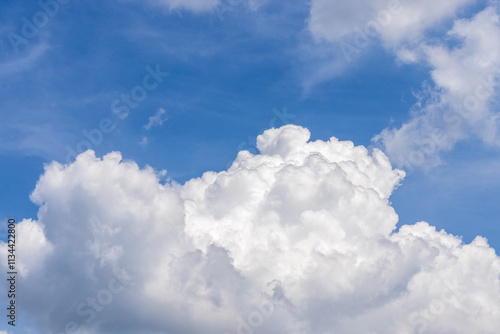 A big white cloud in the blue sky on a beautiful Sunny day. as a background