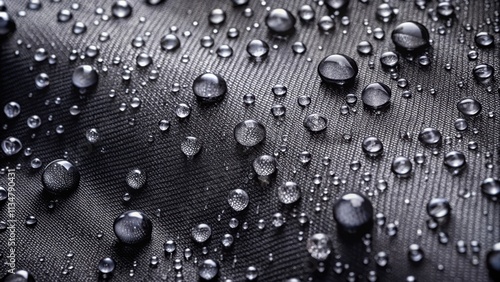 Water drops glistening on black waterproof fabric, water drops, black fabric, waterproof, texture, surface, close-up