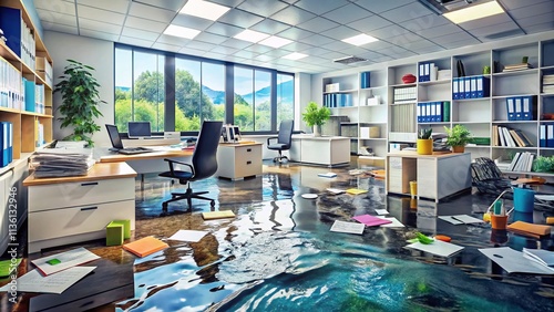 Flood Damage Home Insurance Claim Office Chaos - Water Damaged Documents
