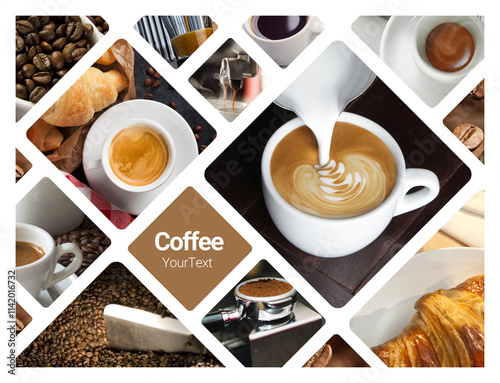 Coffee Shop Concept Photo Collage. Can be used for visual stand, display, brochures, flyer