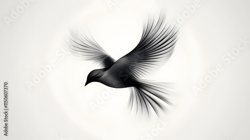 A minimalist tattoo design of a bird in flight with abstract wings.