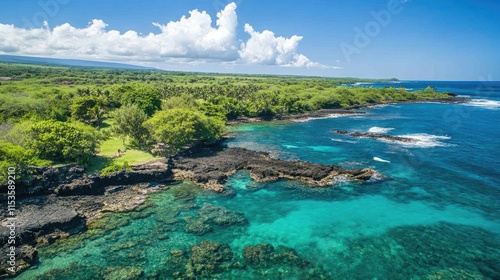 Scenic Aerial View of Tropical Coastline with Clear Blue Water
