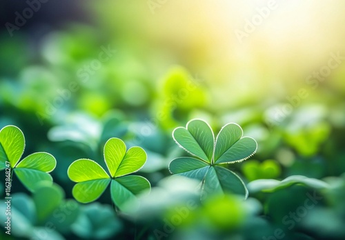 Vibrant Green Clover Leaves in Sunlight, Nature Background