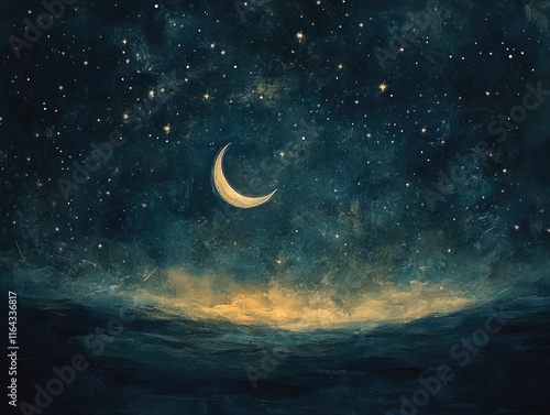 #1232909757Celestial Symphony: An Ethereal Night Sky with Constellations and Crescent Moon