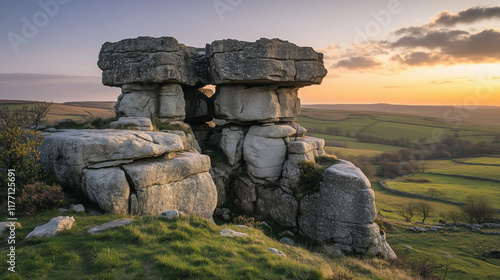 Formacje skalne w otoczeniu dzikiej natury, uchwycony w subtelnym świetle dziennym, podkreślający piękno i unikalność krajobrazu.