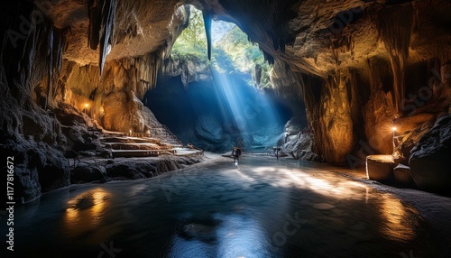 underground cave grotto, AI generated