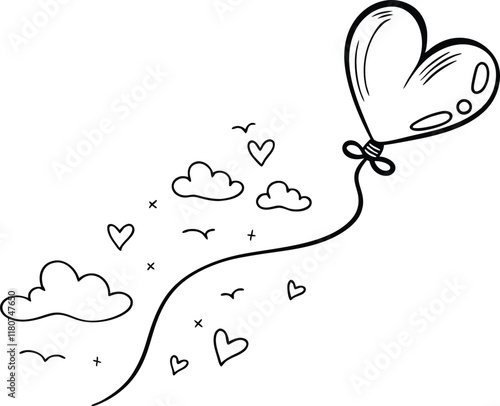 Heart Balloon Floating in the Sky, valentine's day Vector