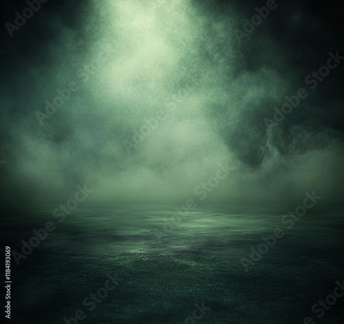 A dark background sets the stage for an atmospheric stock photo, featuring an empty floor cloaked in smoky olive and muted forest green haze, providing a natural, subdued tone.