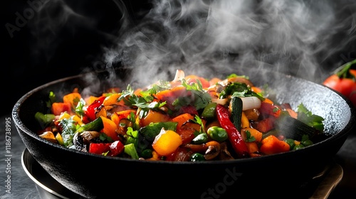 An Artistic Veggie Stir-Fry with Fresh Vegetables, Elegantly Presented and Emanating a Mouthwatering Aroma