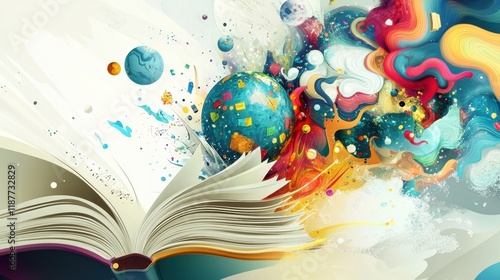 Open Book Unveiling a Universe of Imagination and Colorful Abstract Worlds