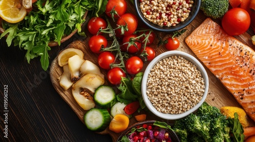 A close-up of a balanced pescatarian dinner, featuring fish, vegetables
