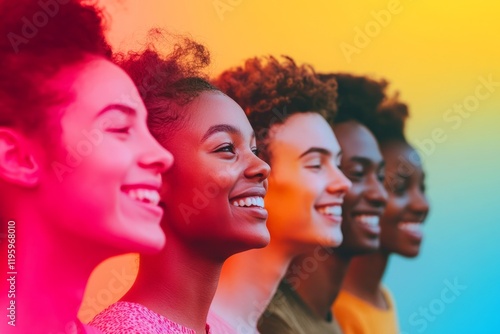 Vibrant group of young people smiling and looking forward with joy and optimism