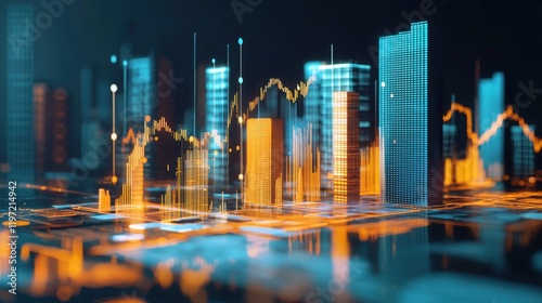 #1061933261High-tech cityscape glowing graphs representing economic stability