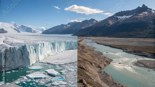 dramatic before and after image of glacier retreating